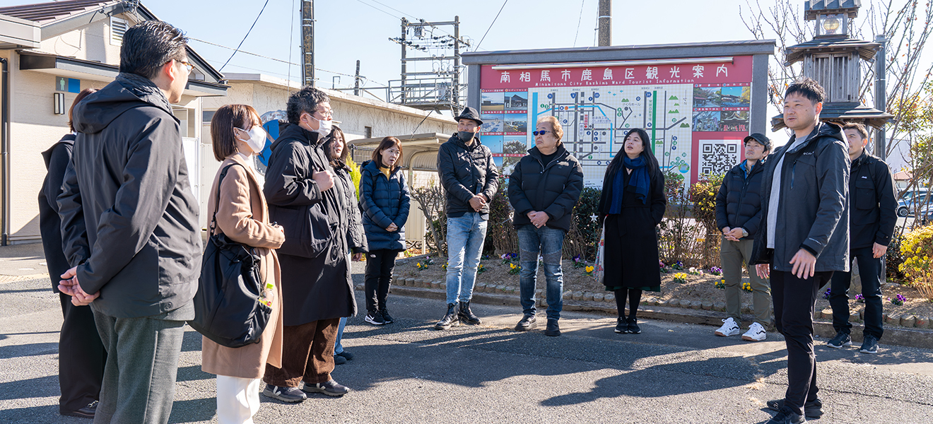 副市長と共に南相馬市を徒歩やバスで移動しながら、この土地ならではの魅力に触れ、圧倒的な賑わいをどうやって街に波及させるか——。参加者は思考を巡らせました。